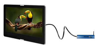 Telewizory łazienkowe są dostarczane z Media-Box, który zawiera wszystkie złącza i gniazda. Media-Box jest oddzielony od ekranu. W ten sposób oddzielamy komponenty wodoodporne i niewodoodporne. Bezpieczeństwo przede wszystkim!
