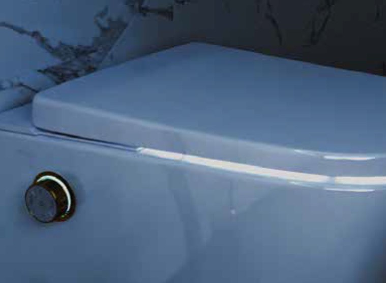 Idealnym rozwiązaniem do oszczędzania miejsca w każdej łazience jest nowoczesne wc funkcją bidetu. Można go obsługiwać za pomocą intuicyjnego i prostej pokrętła sterowania, dostępnego w trzech modnych kolorach: chrom, czarny i złoty. Za pomocą pokrętła bądź pilota (opcjonalnie) użytkownik może zmienić temperaturę wody, siłę natrysku oraz położenie dyszy. Toaleta posiada także funkcję mycia damskiego, mycia tylnego oraz wygodną i ergonomiczną deskę z mechanizmem wolnego opadania. Dodatkowo urządzenie posiada tryb nocny z podświetleniem LED. Automatyczny system odkamieniania zapewnia wyjątkową trwałość i niezawodność.