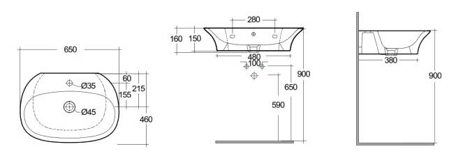 UMYWALKA PODWIESZANA & NABLATOWA 65X46 CM Z OTWOREM NA BATERIĘ