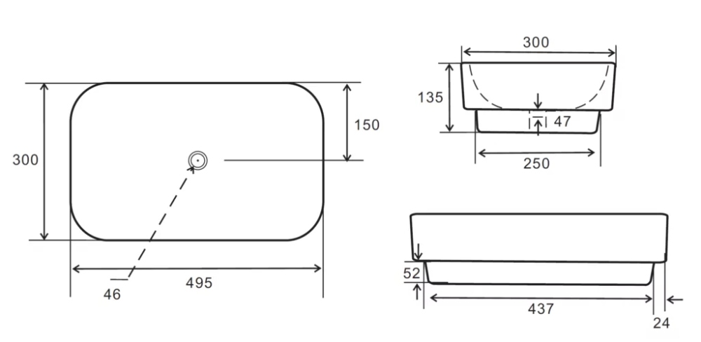 Uptrend MIDEA BASIC 49,5x30 cm umywalka nablatowa biały połysk (TR4120A)