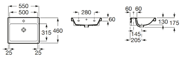 Roca Dostępna Łazienka Umywalka 66 x 55 cm, bez przelewu, z otworem na baterię (A32723500P)