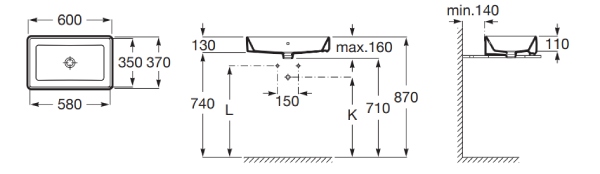 Rak Ceramics Valet Umywalka podwieszana & nablatowa 112x50,5 cm blat Lewa biały połysk...