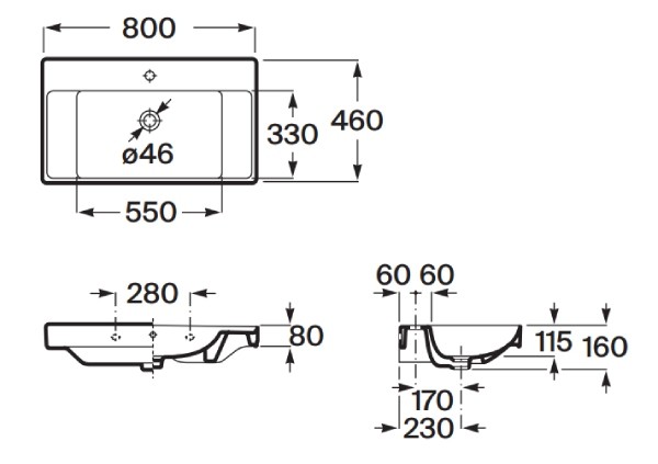 Roca Ona Umywalka meblowa UNIK 80x46 cm Finceceramic® (do kompletacji z kolekcją Ella) (A32768H004)