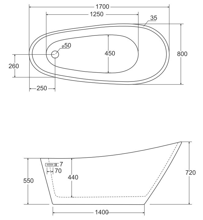 Besco Melody Wanna Wolnostojąca 170x80 + maskownica syfonu z przelewem grafit