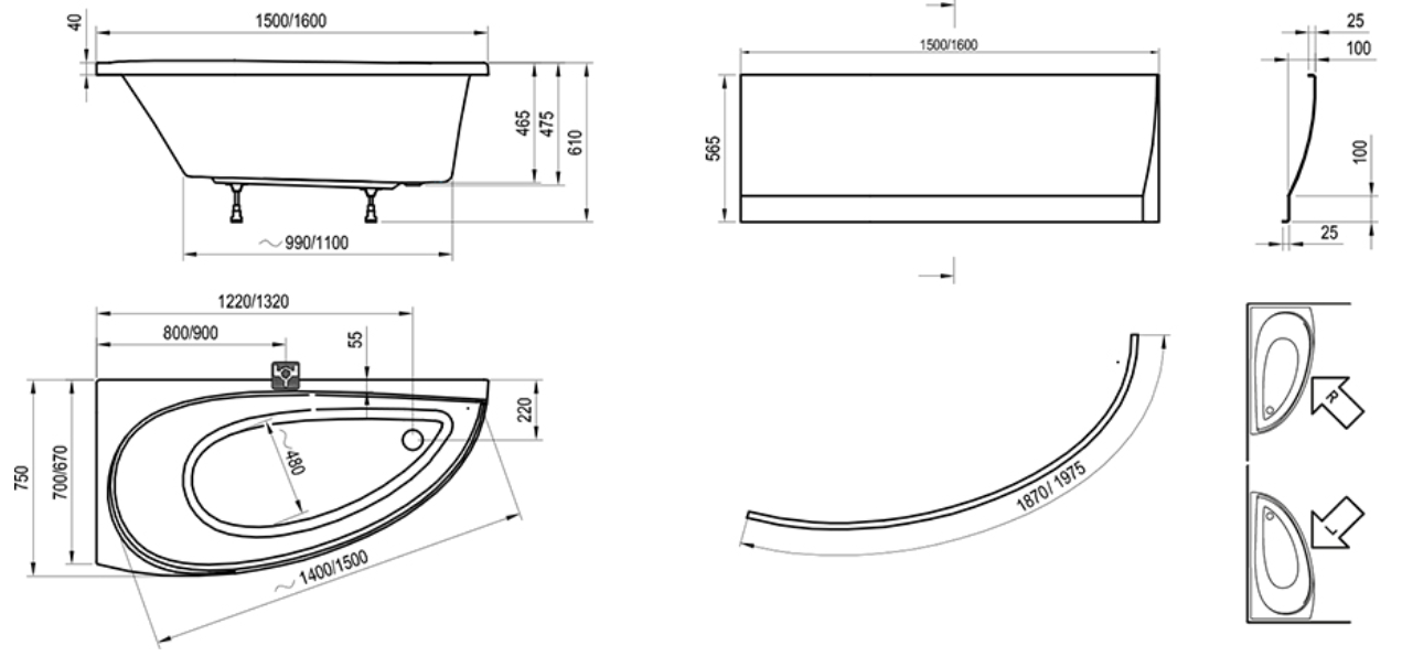 Wygodna i stylowa wanna. Przez asymetryczny kształt wygląd wanny jest bardzo oryginalny. Można ją obudować panelem przednim.