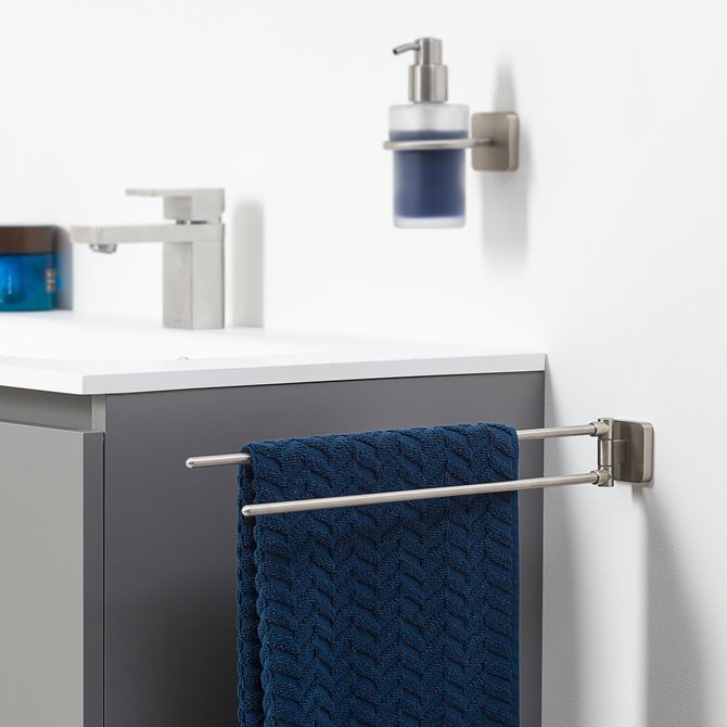 - Dzięki dwóm ruchomym ramionom wieszaka ręczniki są zawsze pod ręką