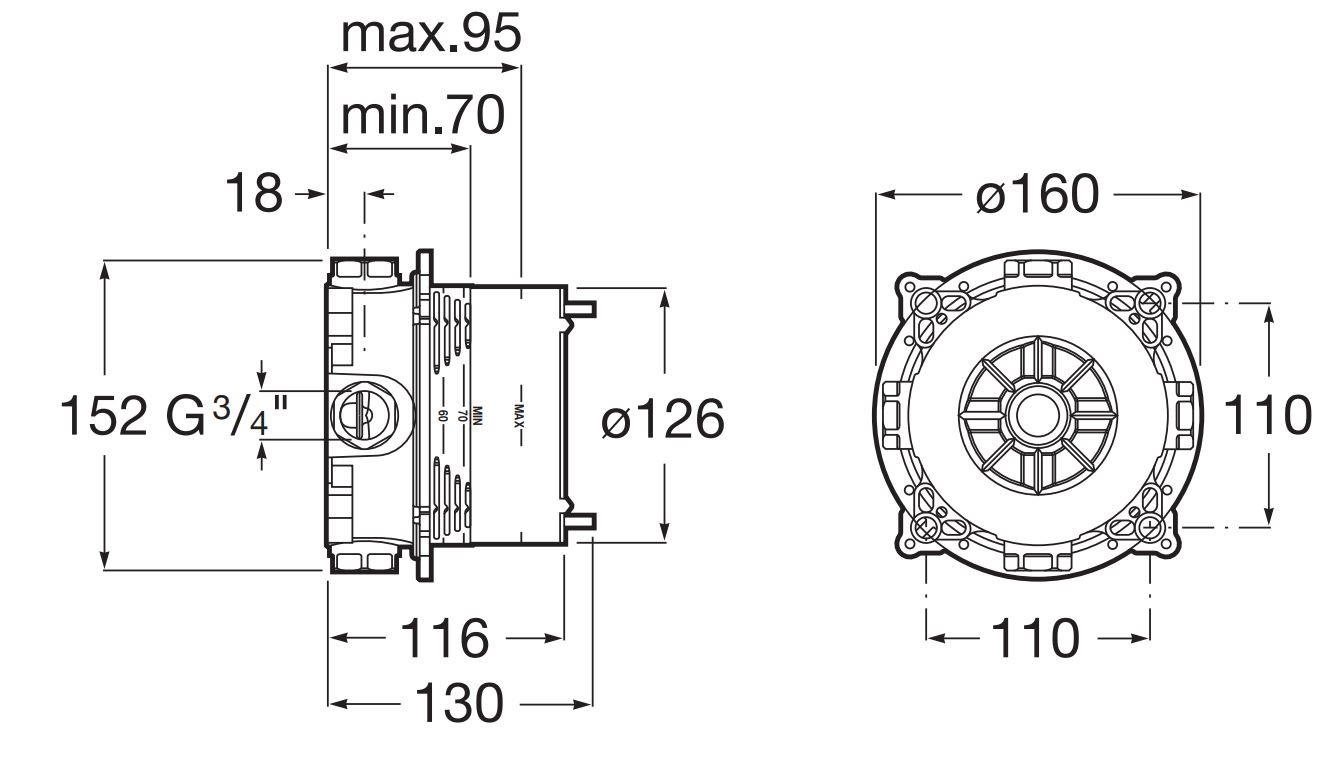 Uniwersalny element podtynkowy, Zewnętrzny Baterii Wannowej Lub Natryskowej