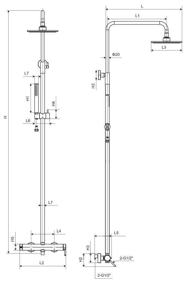 Kohlman Axel Gray Zestaw Prysznicowy Podtynkowy Z Deszczownicą 25 cm (QW210AGR25)